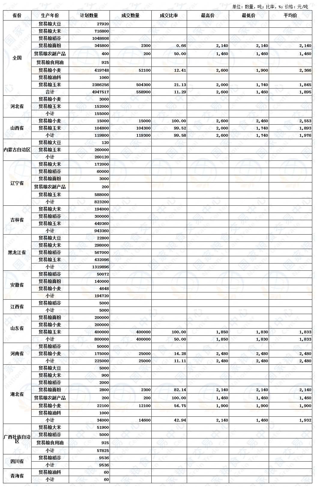 8月15日贸易粮协商交易销售结果