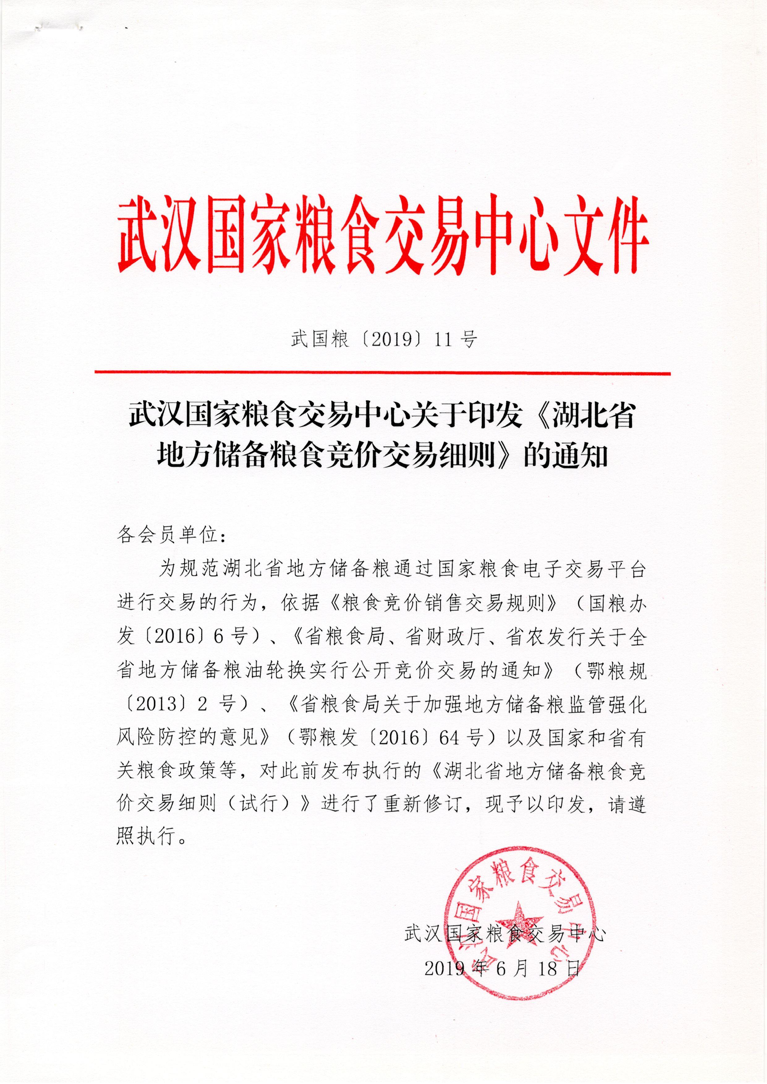 湖北粮网关于印发《湖北省地方储备粮食竞价交易细则》的通知
